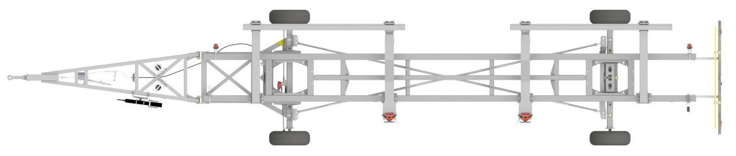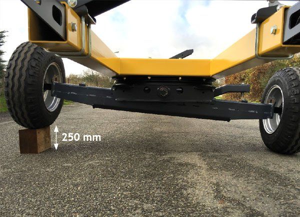 - Deux essieux directeurs sur tourelles à billes avec carrés de 60mm (avant et arrière)