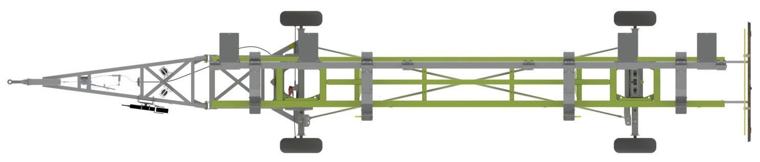 Equipé de 2 essieux directeurs (1 meneur + 1 suiveur forcé), le nouveau chariot COCHET suit la moissonneuse-batteuse sans couper les virages. Il facilite ainsi les nombreuses manœuvres et demi-tours que doivent effectuer les chauffeurs lors de la moisson. Partout où la moissonneuse batteuse passera, le chariot de coupe suivra. Peu encombrant, la longueur de ce chariot de coupe est identique à la largeur de travail de la coupe. En effet, le col de cygne ayant été supprimé, les roues avant se situent dorénavant sous la coupe permettant ainsi de gagner jusqu’à 2m00 de longueur hors tout. Les entrées de champs étant parfois très vallonnées, COCHET fournira, en plus d’un châssis très rigide, un essieu avant oscillant avec un débattement de plus de 35cm.