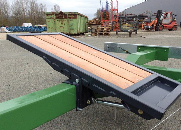 Dieser Wagen ist so konzipiert, dass er hinter den Feldhäckslern angehängt werden kann. Da die Ladeschürze des Feldhäckslers sehr niedrig ist, ermöglicht dieser Schneidwagen das Aufladen der Pick-up-Schnitte zwischen den 2 Vorderrädern und den 2 Hinterrädern. Ausgestattet mit einem Teleskopausleger lässt sich der Schneidwagen sehr einfach alleine hinter dem Feldhäcksler oder dem Schlepper an- und abhängen. Eigenschaften: Für Pickups mit einer Breite von 3 m bis 5 m Fahrgestell mit Schwanenhals 4 identische 6,50x10 Räder 2 breit Stützen mit neigungsverstellbarer Holzplattform Zugelassen für den Bergbau Beleuchtungsrampen mit landwirtschaftlichem Konvoischild und Rundumkennleuchte Lieferung beim Händler montiert COCHET-Schneidwagen passen sich allen Typen und Marken von Mähdreschern an Modelle entsprechen den Straßenverkehrsvorschriften des Bergbaudienstes Bergbaudokumente werden zur Versicherung bereitgestellt .