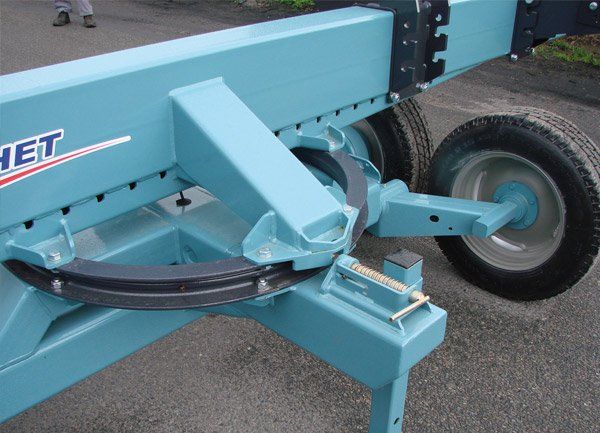 The Pivoting cutting carriage or turret cutting carriage is equipped with a balancing or tandem axle, with 4 wheels. This cart is a model that contractors often adopt. The pivoting header carriage is well suited for small plots. The upper part pivots to hitch or unhitch the mower with little manoeuvre. Characteristics: For cutting up to 6m80 Main frame: 200x150x6 Delivered assembled Approved for mines Telescopic boom 4 preset supports for each model of combine harvester 4 wheels 10.75 15.3 in 14 ply Lighting ramp with LED lights, LED rotating beacon , and agricultural convoy plate supplied as standard Skids supplied with Hitching with quick guide specific to the cut COCHET cutting carriages adapt to all types and all brands of combine harvesters Models comply with road regulations by the Mines Department Mines documents provided for insurance.