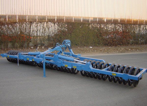 Characteristics: 4 fixed chassis models or 6 hydraulic folding chassis models including: a reinforced 100X80 chassis self-directional and floating coupling head equipped with rollers 50 mm shaft for 700 disc shaft 60 mm shaft for 900 disc bearings self-aligning bearings chains hydraulic folding scrapers in 3m00, 3m50, 4m00, 4m50, 5m00 and 6m00. Folding width 2m17 4 bearings with bearings for 3m00, 3m50 and 4m00 fixed frames 6 bearings with bearings for 3m00, 3m50 and 4m00 fixed frames