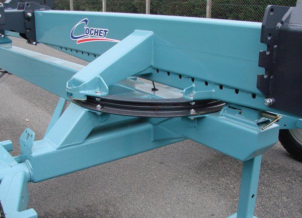 El carro de corte pivotante o carro de corte de torre está equipado con un eje equilibrador o tándem, con 4 ruedas. Este carro es un modelo que los contratistas suelen adoptar. El carro de cabecera pivotante es muy adecuado para parcelas pequeñas. La parte superior pivota para enganchar o desenganchar la segadora con poca maniobra. Características: Para corte hasta 6m80 Bastidor principal: 200x150x6 Se entrega ensamblado Aprobado para minas Pluma telescópica 4 soportes preestablecidos para cada modelo de cosechadora 4 ruedas 10.75 15.3 in 14 telas Rampa de iluminación con luces LED, baliza giratoria LED y placa de convoy agrícola suministrada como Patines estándar suministrados con Enganche con guía rápida específica para el corte Los carros de corte COCHET se adaptan a todos los tipos y todas las marcas de cosechadoras Los modelos cumplen con las normas de circulación del Departamento de Minas Documentos de minas provistos para el seguro.