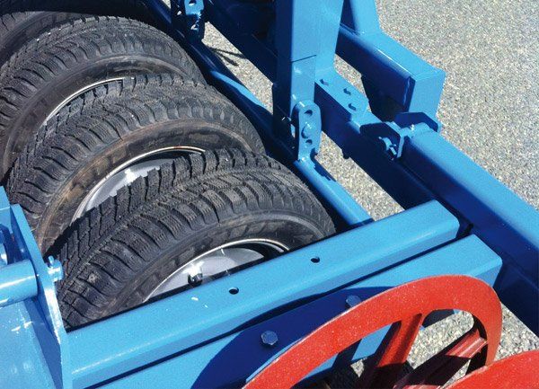 Características: Implemento autodireccional de tracción delantera compuesto por: 1 fila escalonada de 700 discos de hierro fundido de 30° (45° o 600 CdG como opción) montados sobre rodamientos autoalineables 1 fila central de ruedas neumáticas Plegado hidráulico de doble efecto con seguridad (válvula antirretorno) -retorno) en el modelo de 4m Cadena antiatascos tipo "Buttonhole" Rascadores envolventes rígidos sobre un juego de neumáticos Regulación manual del control de profundidad de las ruedas según el terreno mediante 2 manivelas (o mediante 2 hidráulicos) cilindros ver Opciones) Equipo hidráulico necesario : 2 tapones de aceite Doble Efecto