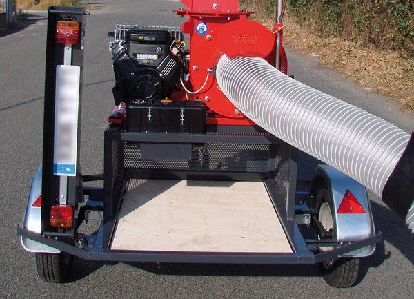 Aspirador de folhas profissional adequado para reboque rodoviário atrás de caminhão basculante. Esta gama de aspiradores de folhas é muito rápida de engate e desengate no engate do camião basculante. Muito confortável na estrada com um eixo superdimensionado de 750kg e rodas de 13 polegadas. Nossos aspiradores de folhas também são muito eficazes para aspirar e triturar todos os rejeitos de poda de cerca viva. Os nossos aspiradores profissionais serão utilizados durante todo o ano para aspirar todos os resíduos vegetais dos parques e municípios. Os nossos clientes profissionais preferem modelos com motor bicilíndrico de 16 e 23 cv para menos ruído e mais potência.