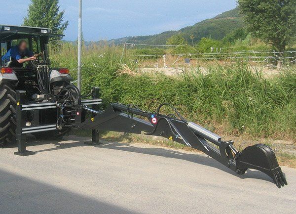 Todos os nossos modelos são deportáveis e adaptáveis de acordo com sua potência em tratores de 14cv a mais de 150cv. Se nossas escavadeiras puderem ser adaptadas em três pontos no engate traseiro dos tratores, recomendamos fortemente a opção do "engate semi-rígido" que bloqueará a retroescavadeira na vertical. Isso protegerá seu trator e manterá a potência total da retroescavadeira. A unidade hidráulica, acionada pela tomada de força do trator, é conectada a um tanque de grande capacidade para evitar o superaquecimento do óleo e fornecer alta potência durante todo o trabalho. O assento e os controles são ergonômicos. As 2 mono-alavancas controlam as várias funções como numa miniescavadora. As 2 muletas são controladas individualmente para restabelecer o equilíbrio em terreno instável. Uma válvula libera o bloqueio do deslocamento lateral. A força de rasgo dessas escavadeiras varia de acordo com o modelo de 1 a 3 toneladas. Esta alta potência é garantida pelo uso cruzado de componentes hidráulicos de qualidade e reforços criteriosamente colocados. A caçamba ripadora original tem 30cm de largura nos modelos GP130, GP180 e SP180 e 40cm nos demais modelos e possui dentes intercambiáveis. IMPORTANTE: Garantia de 2 anos em nossas lanças e estabilizadores (se forem respeitadas as normas do fabricante). Todas as nossas juntas são endurecidas. Todos os nossos eixos estão parados. Os nossos distribuidores topo de gama estão equipados com 4 válvulas anti-choque que garantem a protecção dos cilindros.