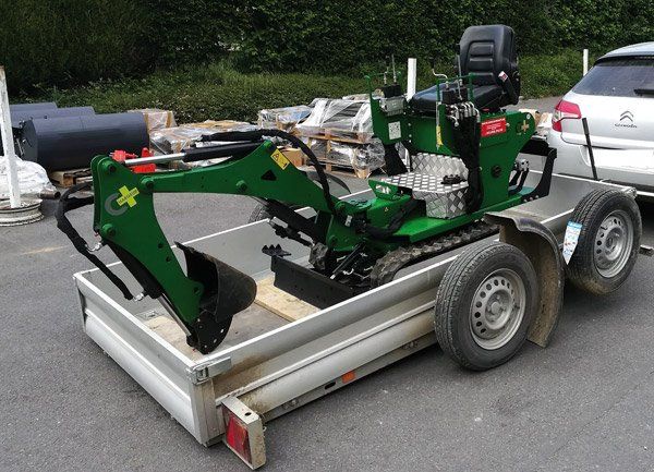 Este novo conceito de reboque permite o abaixamento hidráulico do reboque para um carregamento seguro e confortável de uma pessoa. Com esta plataforma e as opções apropriadas, você tem um reboque de motocicleta e um reboque de bagagem. Este conceito foi objecto de um pedido de patente internacional PCT, facilita o carregamento de MOTOCICLETAS, MP3s, SCOOTERS, QUADS e muitos outros equipamentos (mini-tratores, gadanheiras, rolos, porta-paletes, paletes etc... Este reboque é equipado com dispositivo de rotação do eixo por meio de equipamento hidráulico combinado com a barra de tração. a cabeça de engate A inclinação é de cerca de 3° a 5° dependendo da altura do gancho de engate.