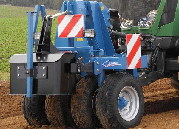 O compactador de pneus SUMOSAURE COCHET é uma ferramenta empurrada com 8 ou 12 rodas pneumáticas dependendo do modelo. rodas externas (modelo de 8 rodas) ou 4 rodas (modelo de 12 rodas) permitindo re-suportar as partes da lavoura que não foram apoiadas pelas rodas do trator. O SUMOSAURE é compatível com qualquer equipamento pneumático do trator: rodas simples, duplas ou largas. Características: Potência do trator: até 200 CV Recomendado para trator: 4WD Autodireção por molas compensadoras Largura do suporte: 165 cm 4 rodas de 10,0 75-15,3 (ou equivalente) Peso conforme equipamento: 600 Kg Suporte de peso padrão 2 trens de pouso como padrão Equipado com luzes de trabalho LED como padrão