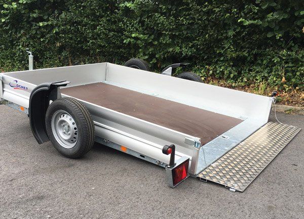 Ce nouveau concept de remorque permet un abaissement hydraulique de la remorque pour un chargement en toute sécurité et confort, à une seule personne. Avec ce plateau et les options adéquates, vous disposez à la fois d’une remorque porte moto et d’une remorque bagagère. Ce concept a fait l’objet d’un dépôt de brevet international PCT, il permet de charger aisément MOTOS, MP3, SCOOTERS, QUADS et de nombreux autres équipements (mini tracteurs, tondeuses, engins roulants, transpalettes, palettes etc...