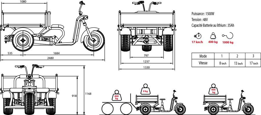 Caractéristiques Triporteur Zosh